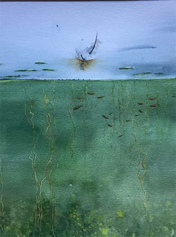 I have spent most of my life living and working close to nature. My artwork is inspired by both the beauty I see around me and the mood it evokes in me. My husband and I love to snorkel, so much of my work is inspired by the many hours we spend below the surface, in the lakes here in Maine and tropical waters off various islands. I have begun experimenting with pressed seaweed and plant material as part of my artistic journey. The need to create is a powerful force that is ever present in my life.